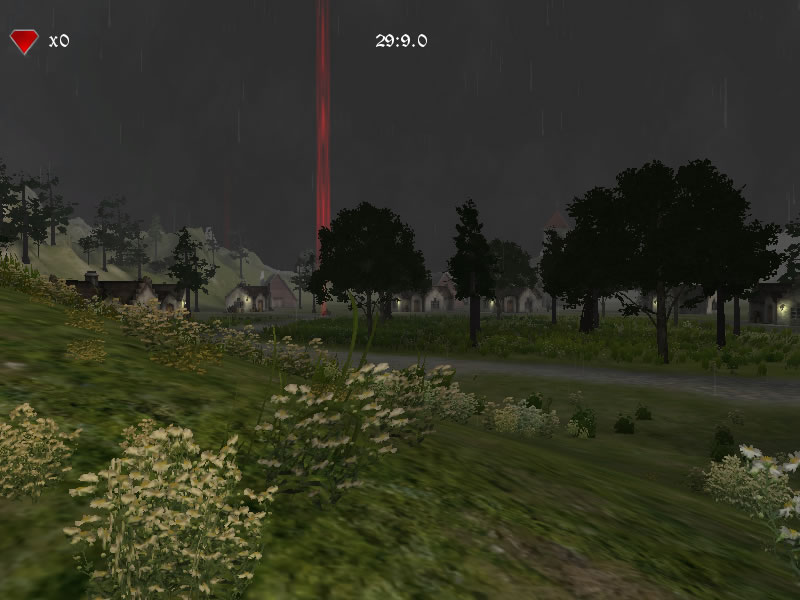A game-like tour of an outdoor scene with different visual effects (rain, lightning, water). The goal is to collect the 10 gems scattered throughout the scene.